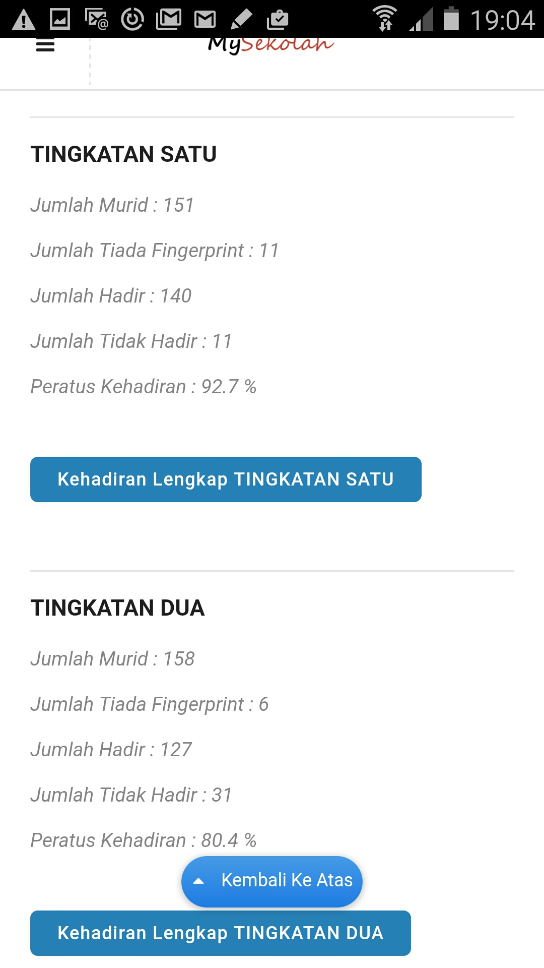 3. Klik pada butang ‘Kehadiran Lengkap TINGKATAN DUA’ jika ingin melihat lebih terperinci kehadiran tingkatan dua, klik pada butang mengikut pilihan anda